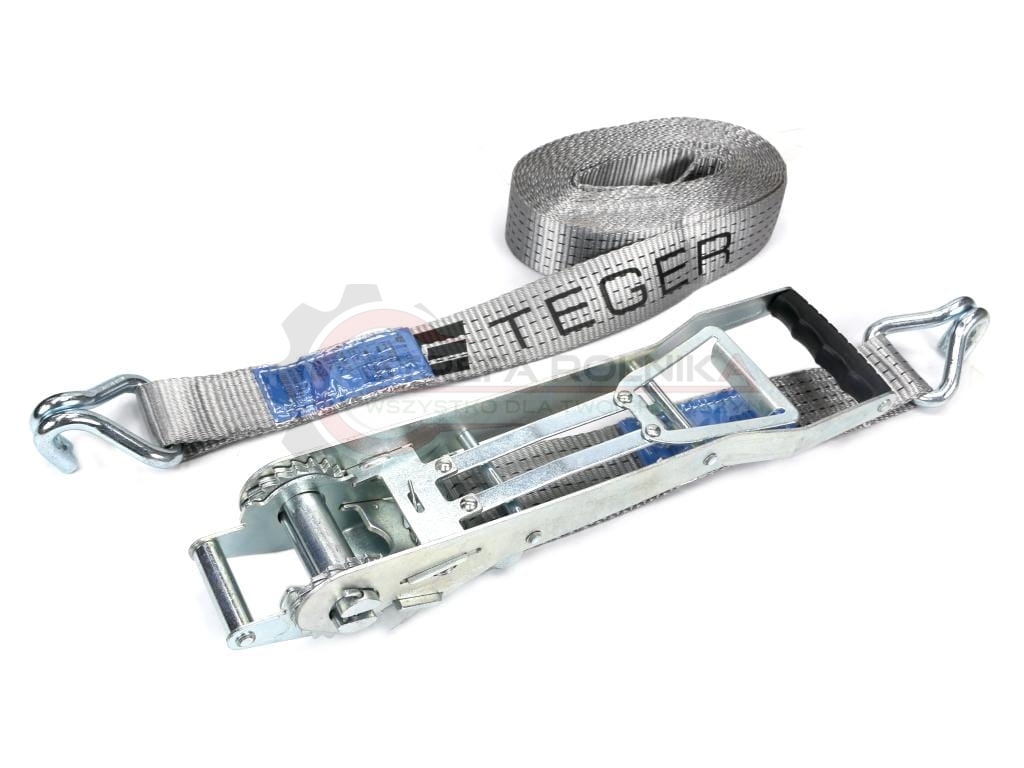Pas transportowy 5T 10m komplet z napinaczem wzmocnionym wydłużonym 370 mm ERGO z atestem. Dopuszczalne 5T długość pasa 9,5 m , długość pasa przy napinaczu 0,5 m. Napinacz z podwójną zębatką. TEGER
