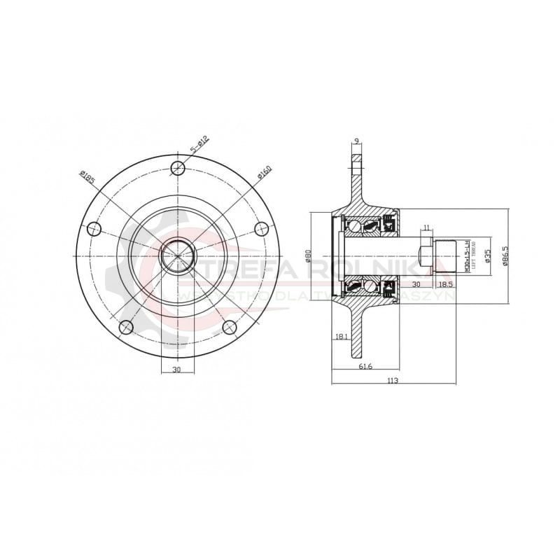 Piasta talerza bezobsługowa 5 otworowa bez nakrętki do Lemken Rubin lewa 5554503, 55510015 - zamiennik