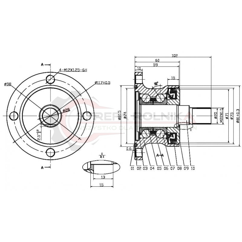 Piasta talerza bezobsługowa typ SKF 4 otworowa bez nakrętki - zamiennik BAA-0004