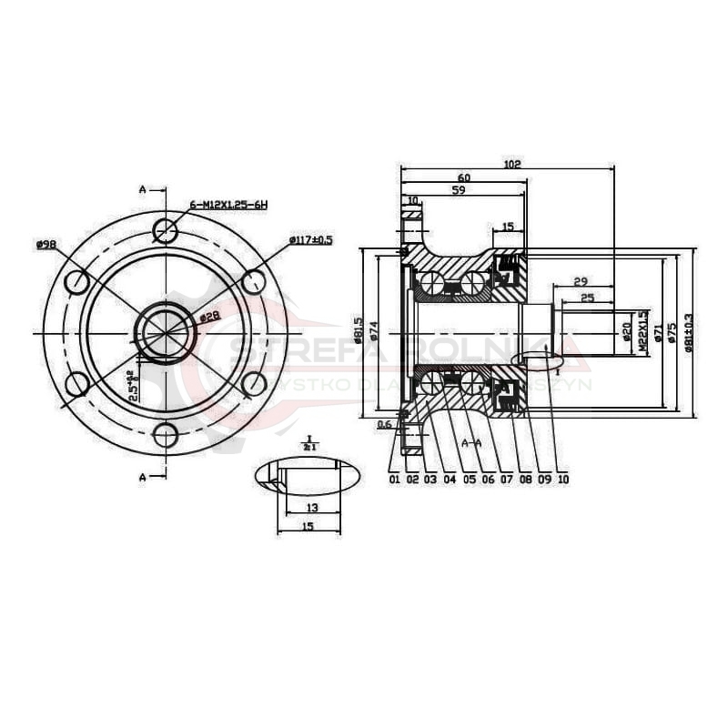 Piasta talerza bezobsługowa typ SKF 6 otworowa bez nakrętki - zamiennik