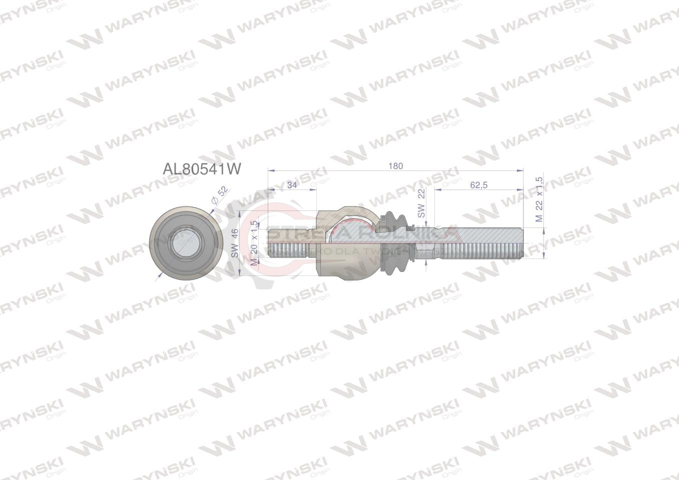 Przegub kierowniczy 180mm- M20x1,5; M22x1,5 AL80541 WARYŃSKI