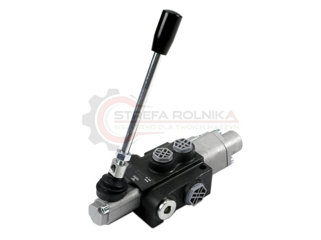 Rozdzielacz hydrauliczny 1-sekcyjny 40L z sekcją pływającą VOIMA - monoblokowy z układem równoległym z neutralną pozycją środkową. Olej w pozycji neutralnej krąży między pompą hydrauliczną a zbiornikiem. Sekcja: pływająca (z zatrzaskiem).
