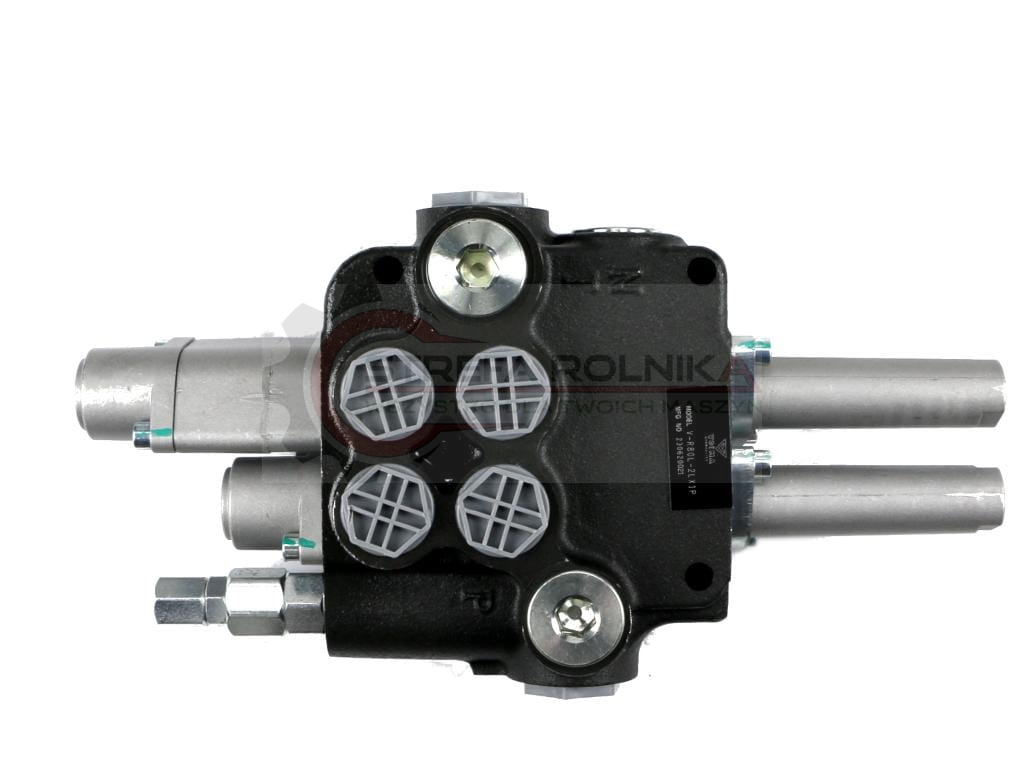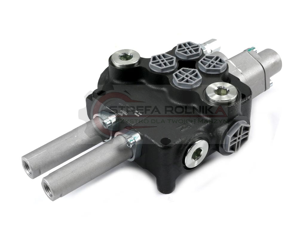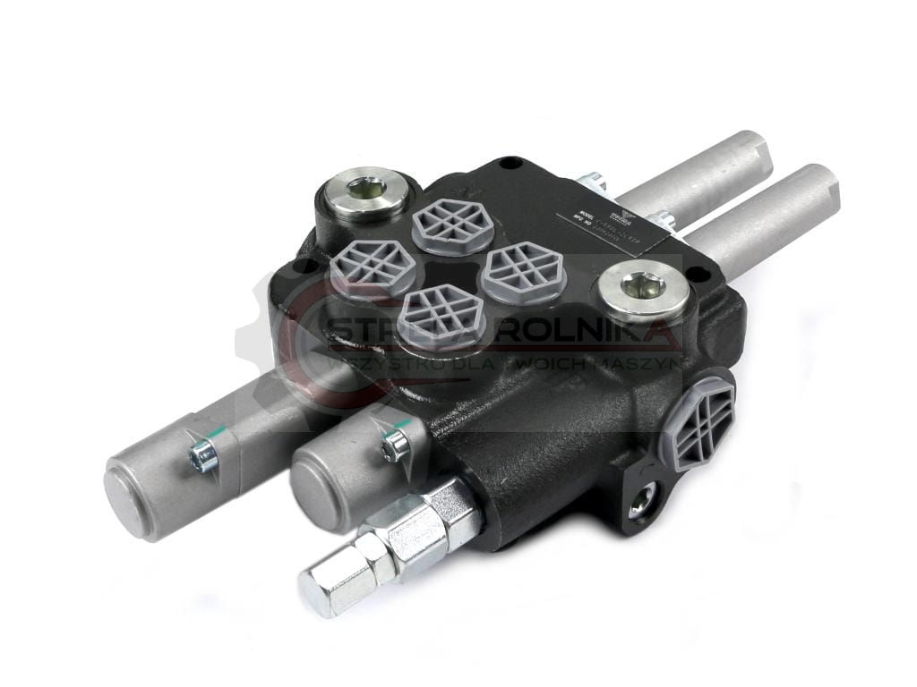 Rozdzielacz hydrauliczny 2-sekcyjny 80L (1-sekcja pływająca) sterowany na linkę VOIMA - monoblokowy z układem równoległym z neutralną pozycją środkową. Olej w pozycji neutralnej krąży między pompą hydrauliczną a zbiornikiem. Jedna sekcja: pływająca (z zatrzaskiem).