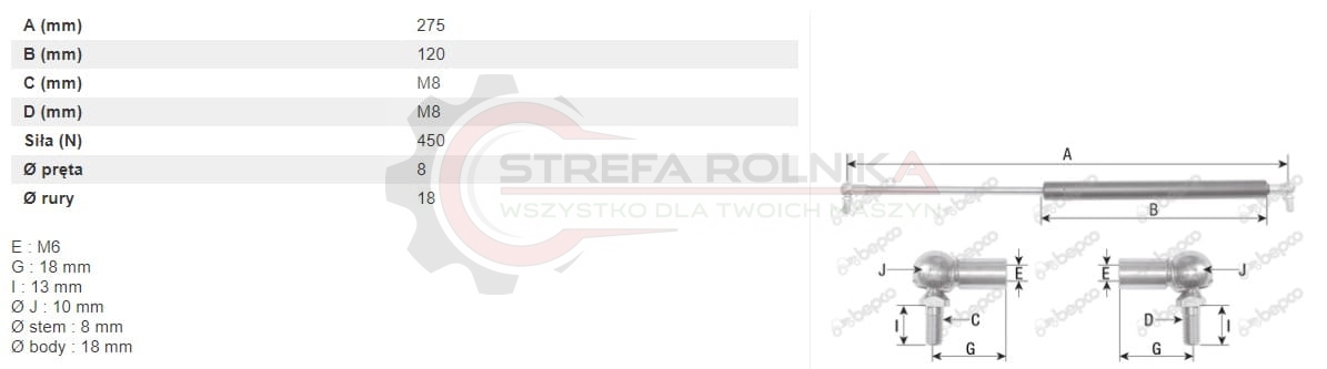 SIŁOWNIK GAZOWY DRZWI CASE JX55, JX60, JX65, JX70, JX75, JX80, JX85, JX90, JX95 (5089549, 5097320)