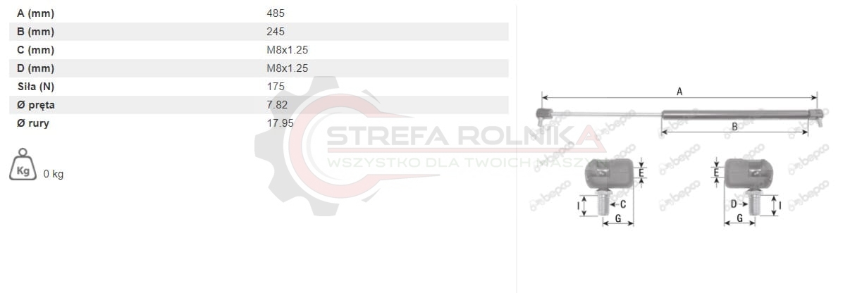 SIŁOWNIK GAZOWY DRZWI MASSEY FERGUSON 4215, 4220, 4225, 4235, 4240, 4245, 4255, 4260, 4265, 4270, 4315, 4320, 4325, 4335, 4345, 4355, 4360, 4365, 4370 (3904695m1)