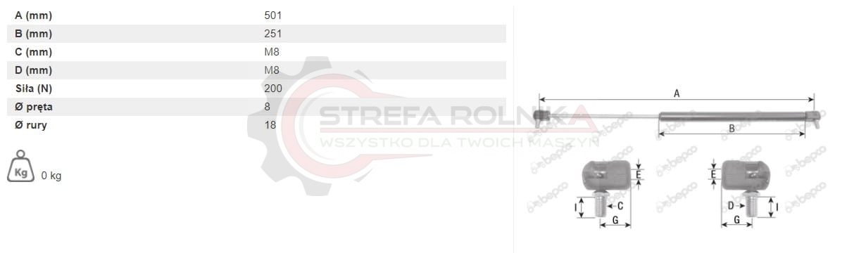 SIŁOWNIK GAZOWY TYLNEJ SZYBY CASE C42, C48, C55, C64, C70, CS48, CS52, CS58, CS63, CS68, CS75 (134701577)
