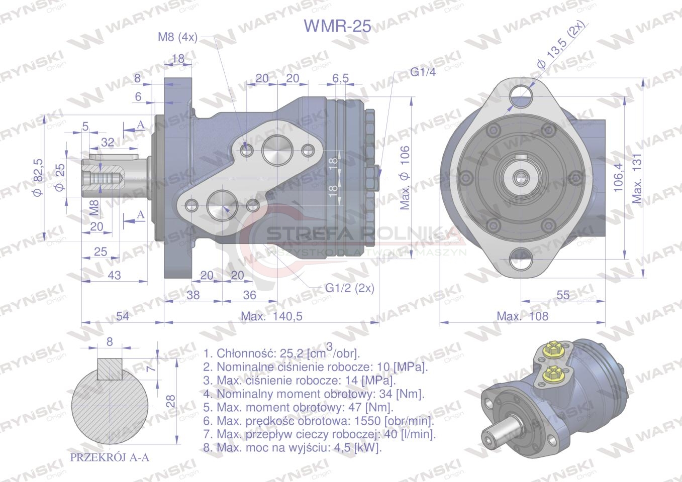 Silnik hydrauliczny orbitalny WMR 25 cm3/obr (100 bar / max.200 bar) Waryński
