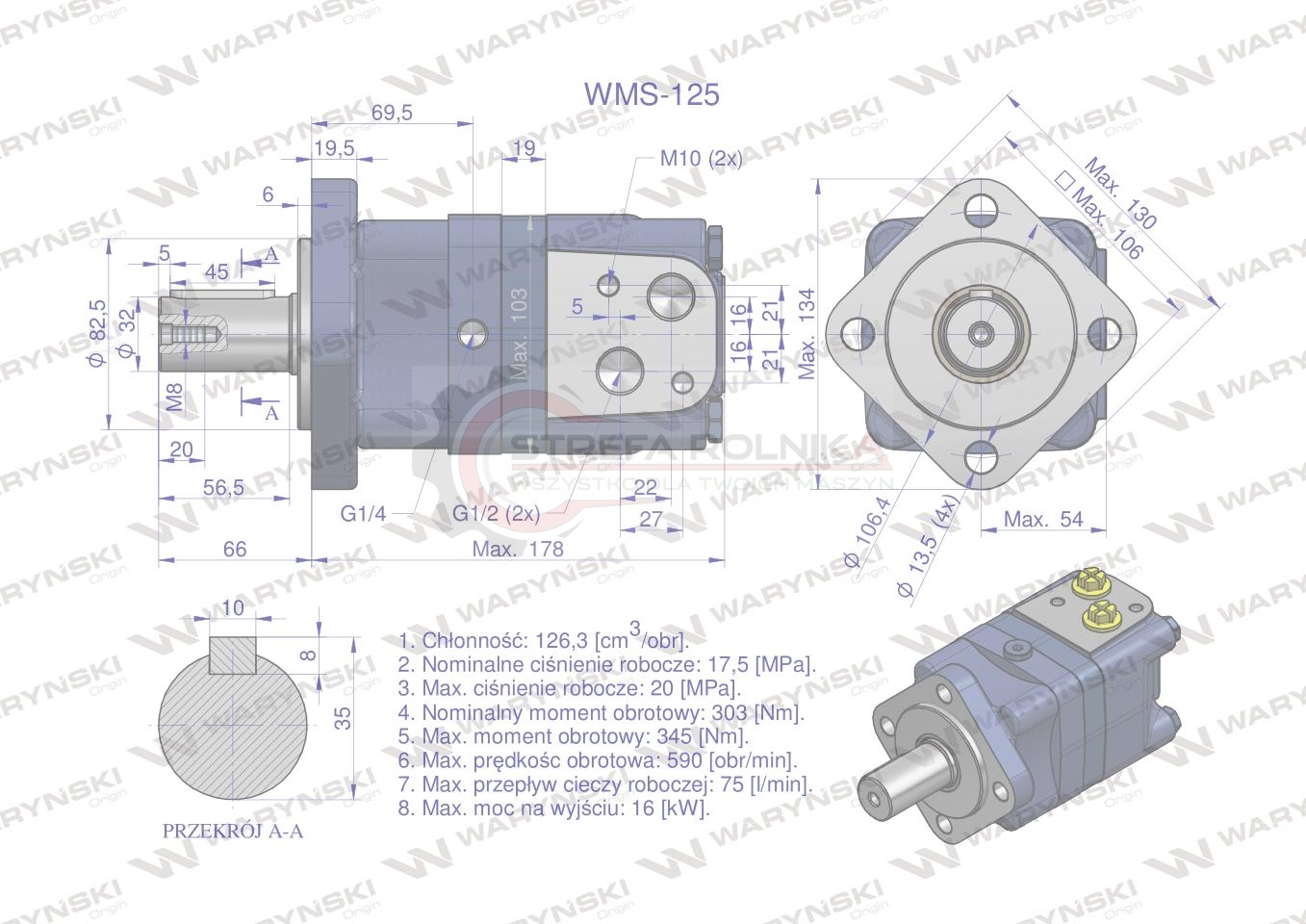 Silnik hydrauliczny orbitalny WMS 125 cm3/obr (175 bar / max.225 bar) Waryński