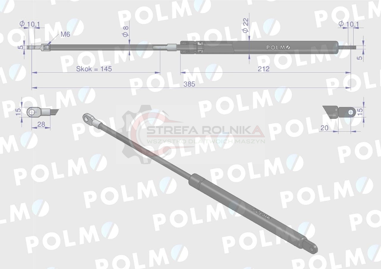Siłownik maski L max. 385mm 65415046 MASSEY FERGUSON POLMO
