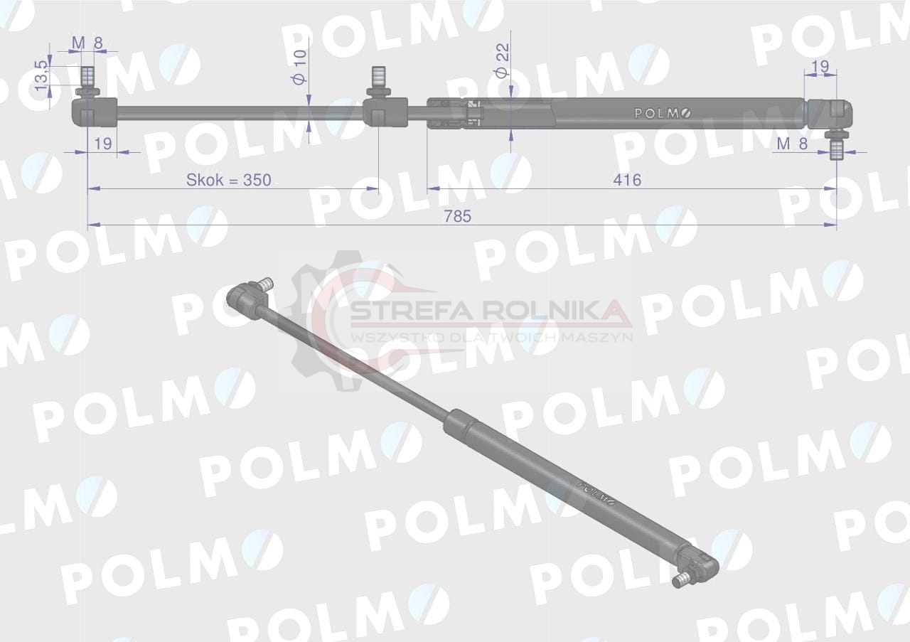 Siłownik maski L max. 785mm 3780734M1P MASSEY FERGUSON POLMO
