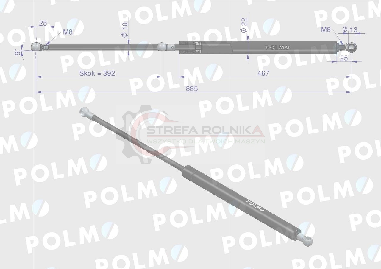 Siłownik maski L max. 885mm 65415047 MASSEY FERGUSON POLMO