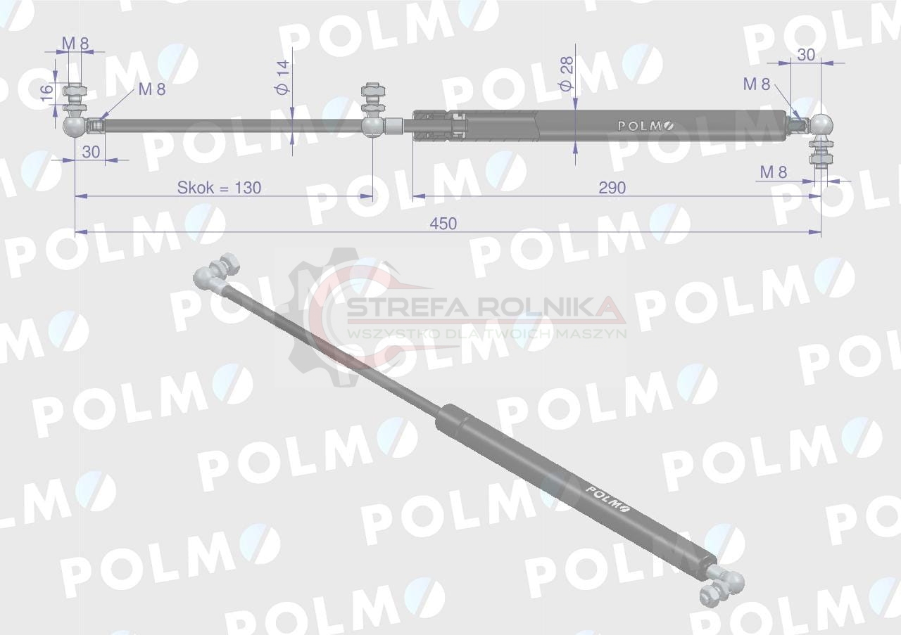 Siłownik maski silnika L max. 450mm 87480238P CASE IH NEW HOLLAND POLMO