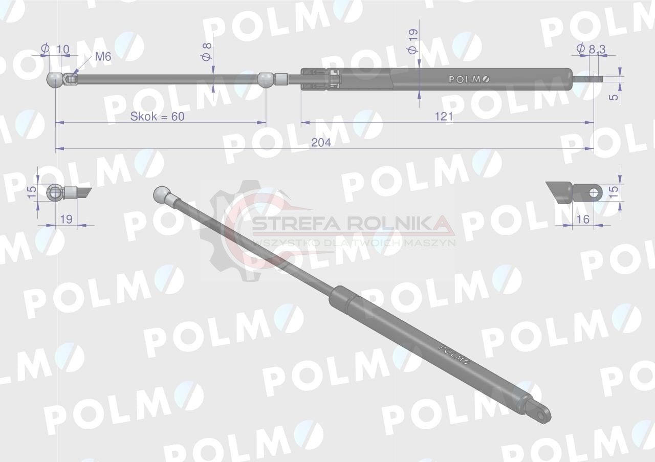 Siłownik pedału sprzęgła L max. 204mm 3583941M1P MASSEY FERGUSON POLMO