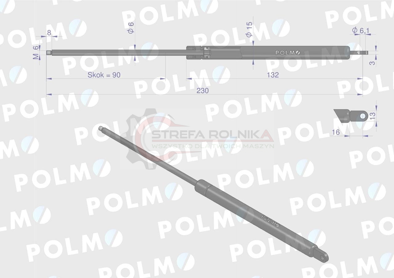 Siłownik szyberdachu L max. 230mm AL28649P JOHN DEERE POLMO