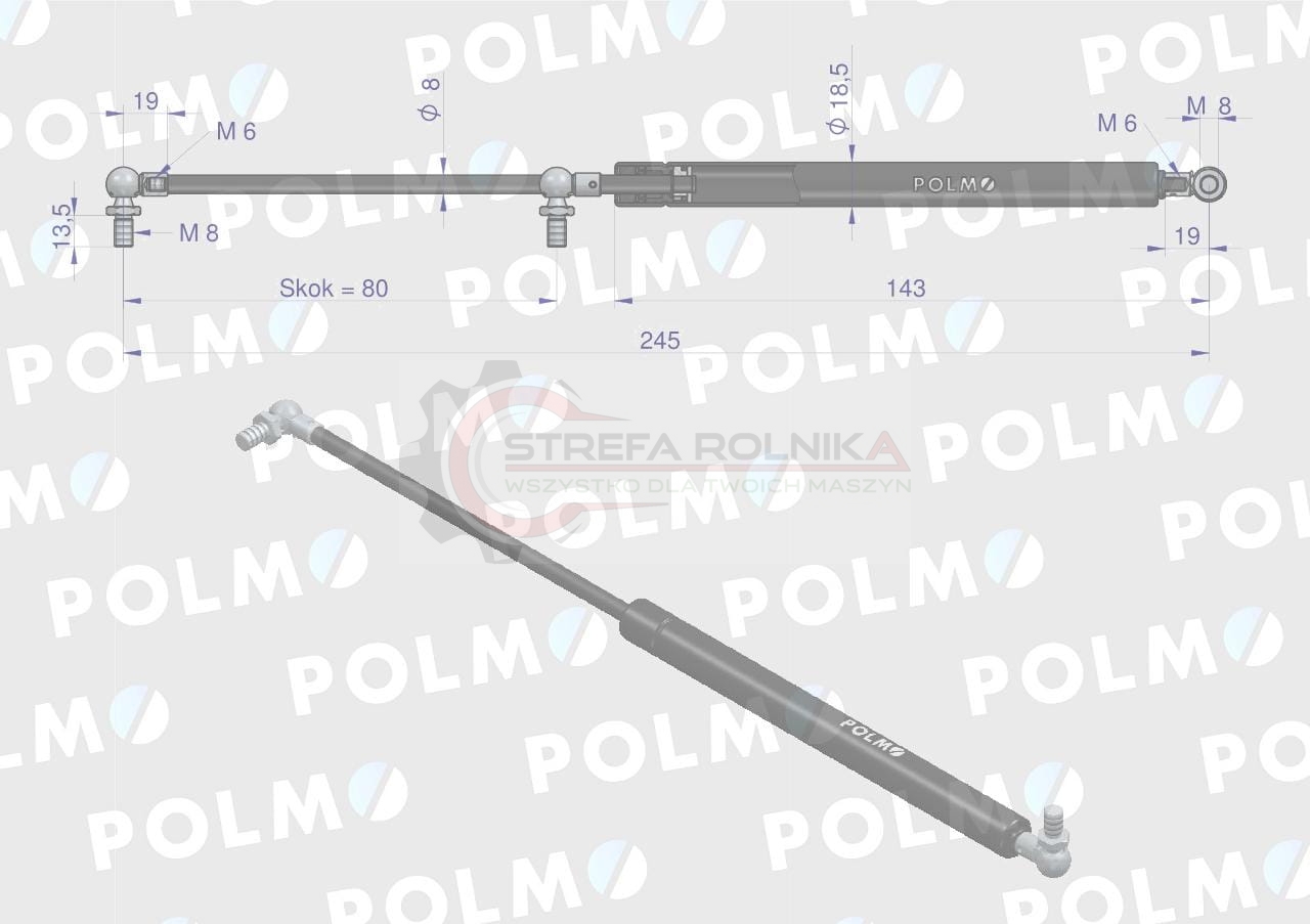Siłownik szyberdachu L max. 245mm 3399042R0P CASE IH POLMO