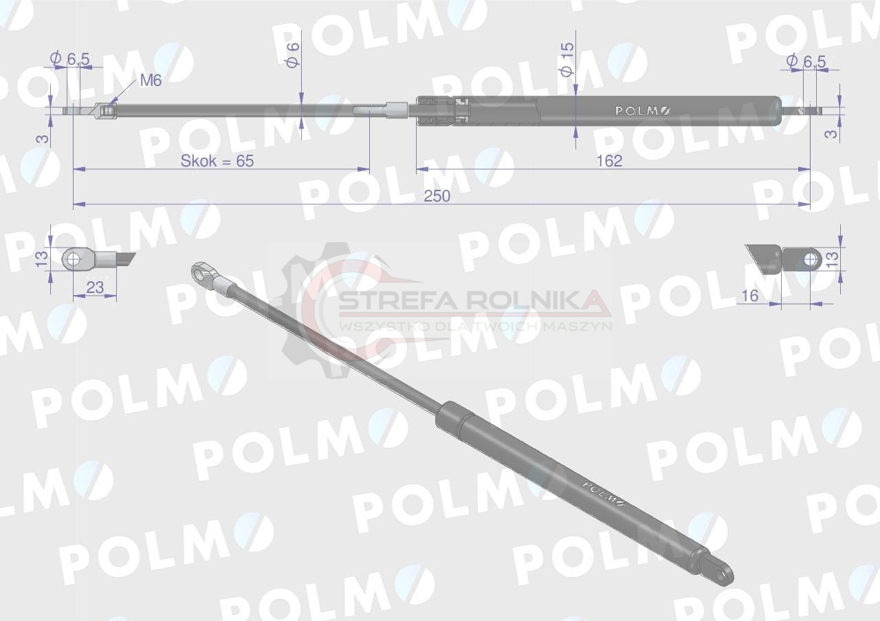Siłownik szyberdachu L max. 250mm 3221572R0P CASE IH POLMO