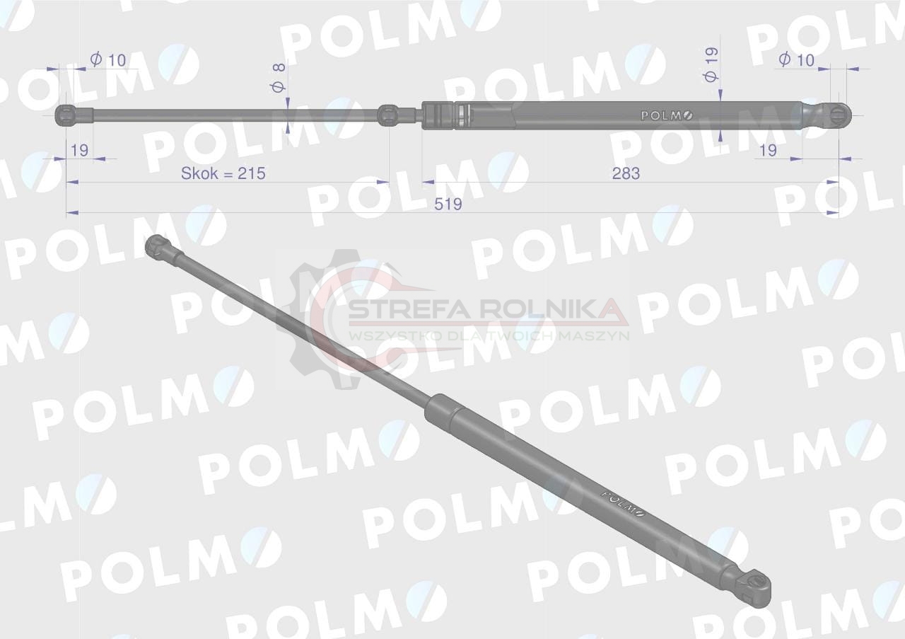 Siłownik szyberdachu L max. 519mm AL160699P JOHN DEERE POLMO