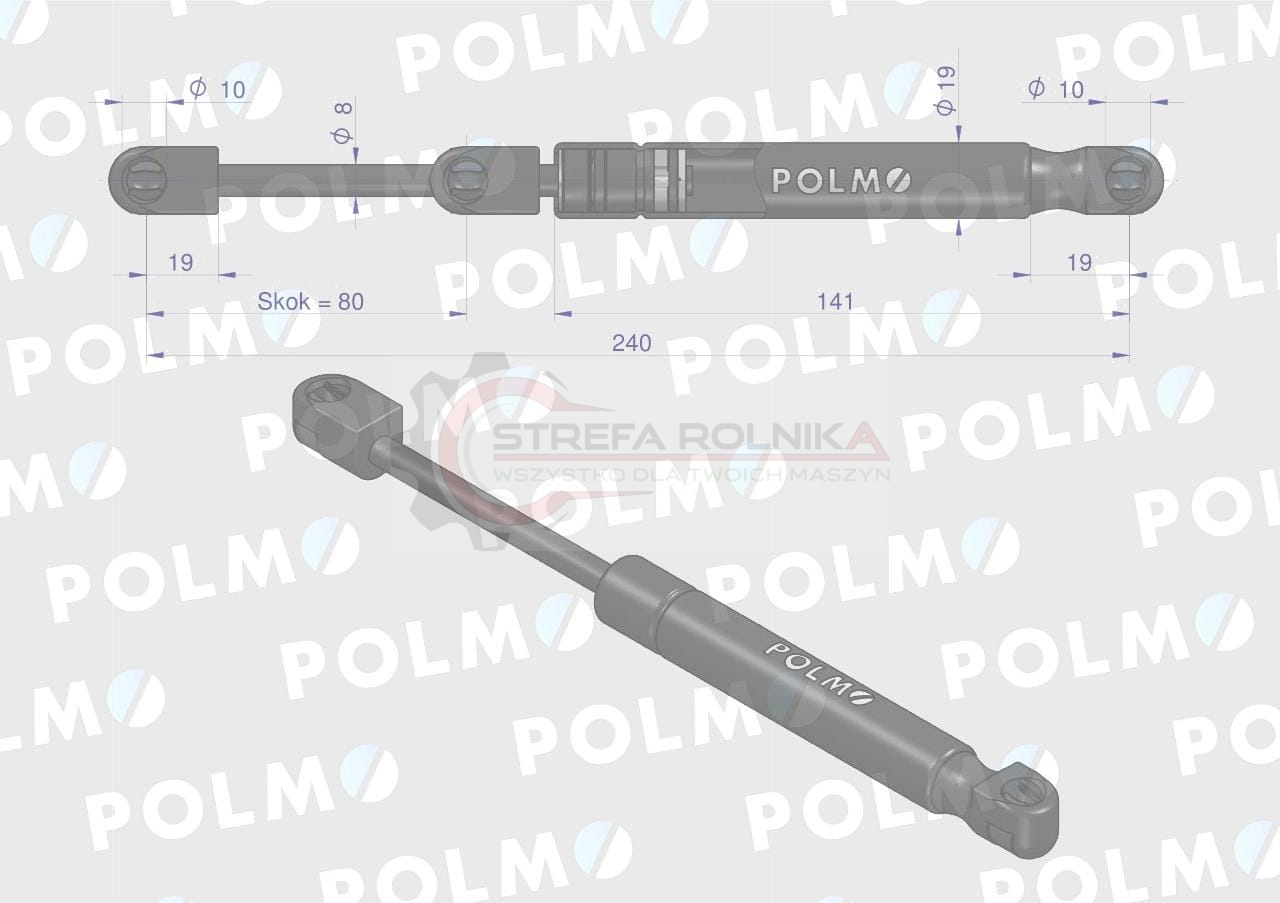 Siłownik szyby przedniej, szyby drzwi L max. 240mm 1284622C1P CASE IH POLMO