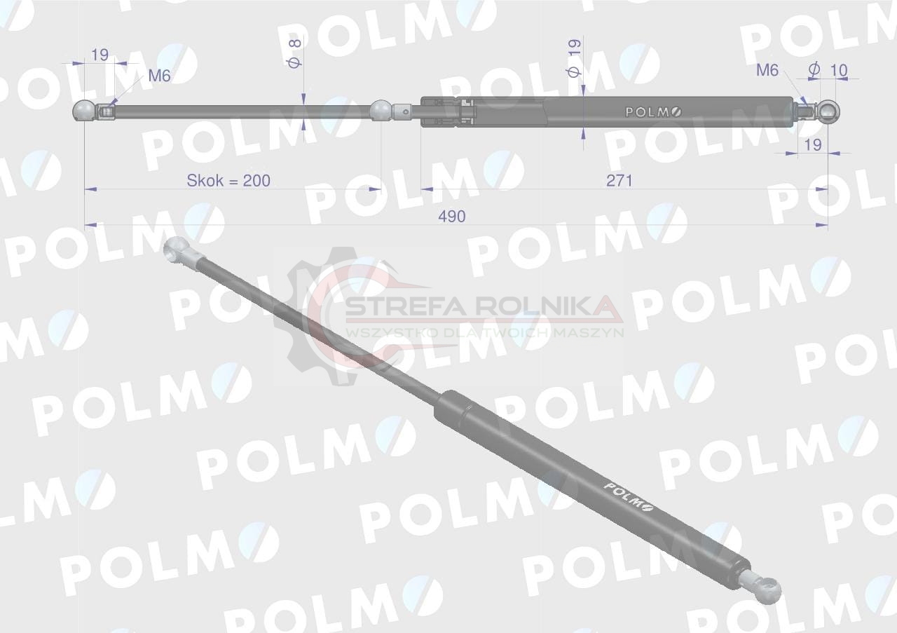 Siłownik szyby przedniej L max. 490mm CA4818QSP CASE IH POLMO