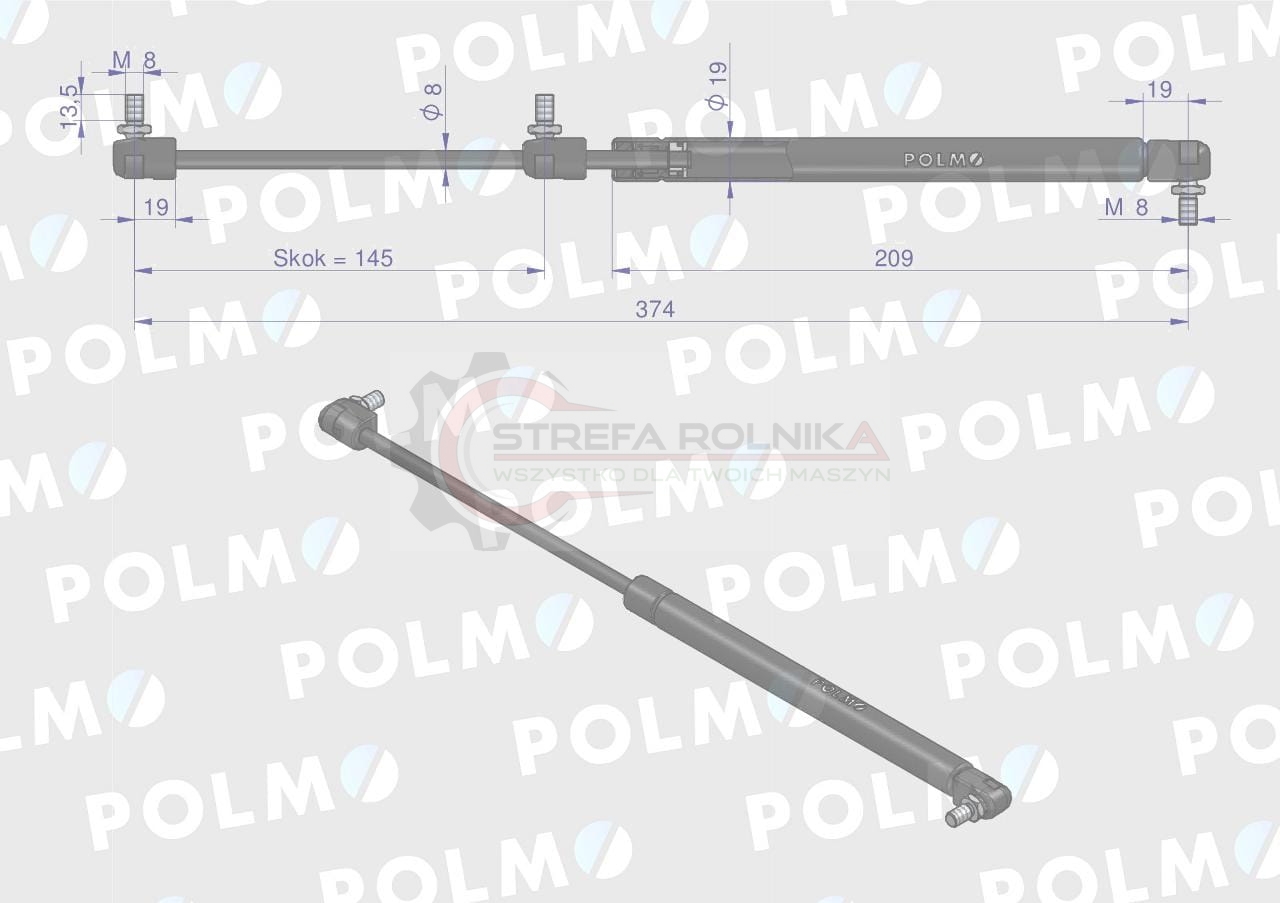 Siłownik szyby tylnej L max. 374mm 65418006 RENAULT POLMO