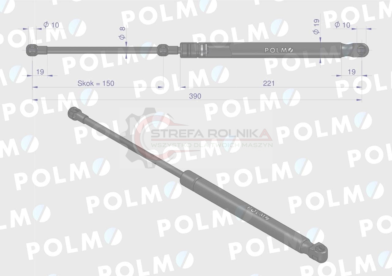 Siłownik szyby tylnej L max. 390mm 44910537P CASE IH NEW HOLLAND STEYR POLMO