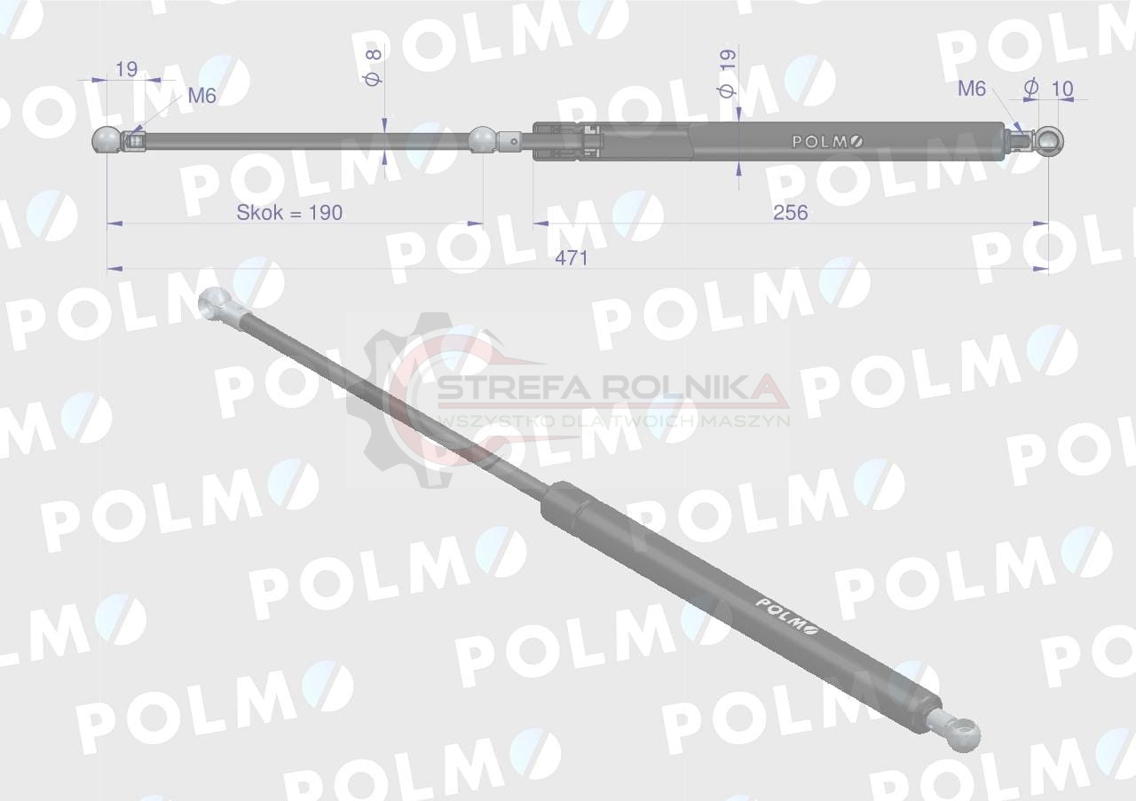 Siłownik szyby tylnej L max. 471mm 1971235C1P CASE IH POLMO