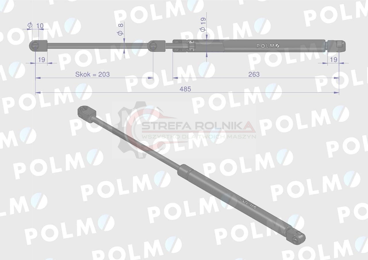 Siłownik szyby tylnej L max. 485mm 3816796M1P MASSEY FERGUSON POLMO