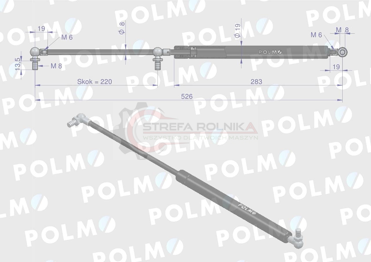 Siłownik szyby tylnej L max. 526mm 65415004 MASSEY FERGUSON POLMO