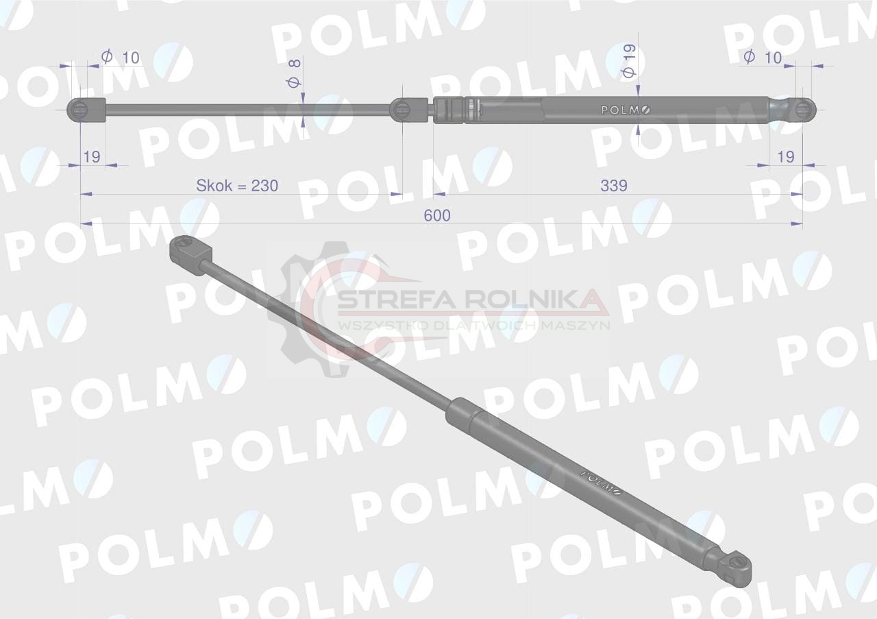 Siłownik szyby tylnej L max. 600mm CA575798P FENDT POLMO