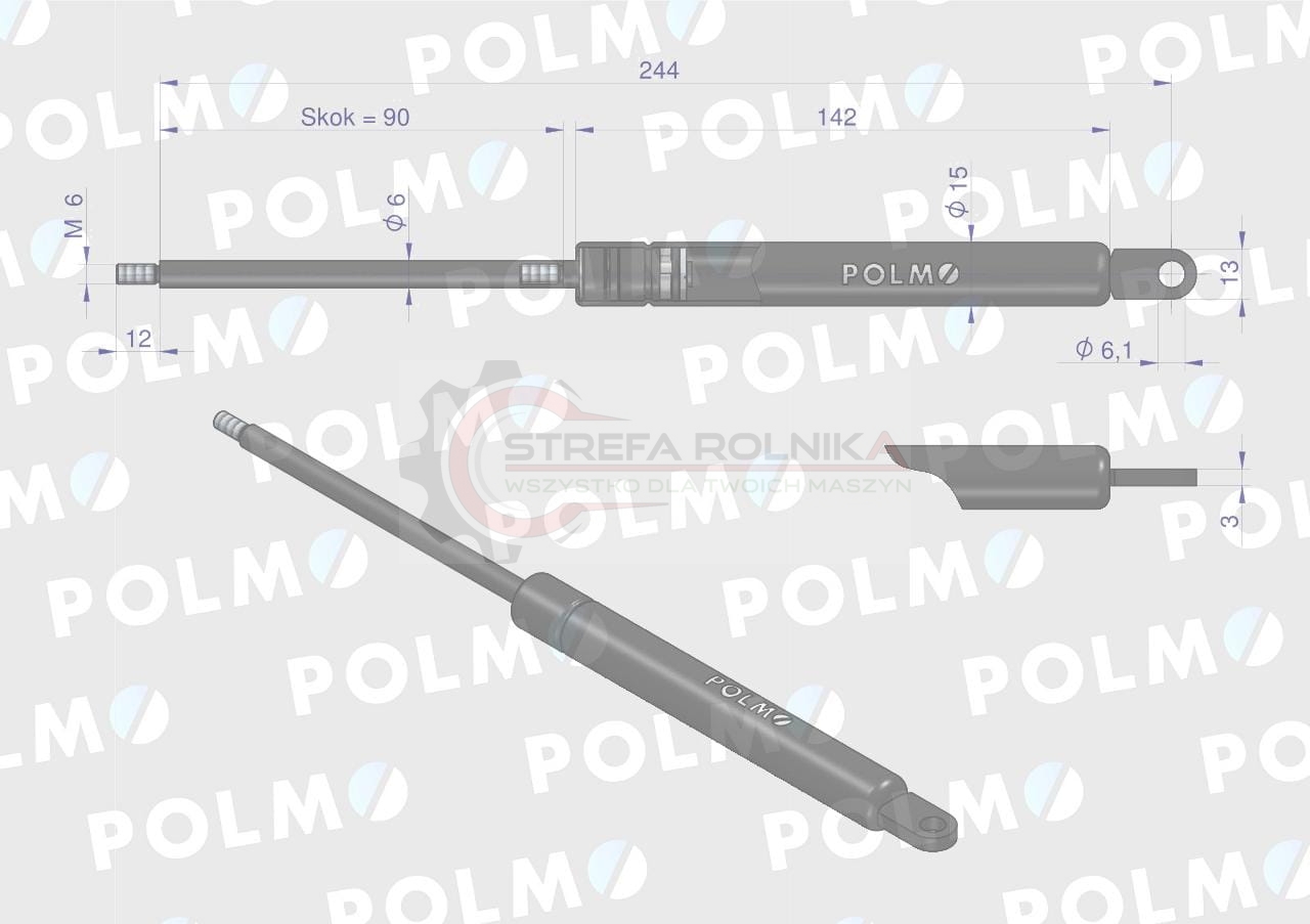 Siłownik szyby tylnej; szyberdachu JOHN DEERE POLMO