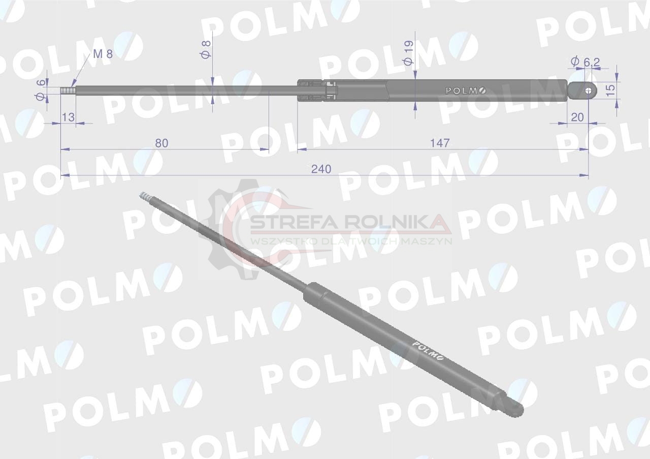 Siłownik szyby tylnej. szyberdachu L max. 240mm 65412022 JOHN DEERE POLMO