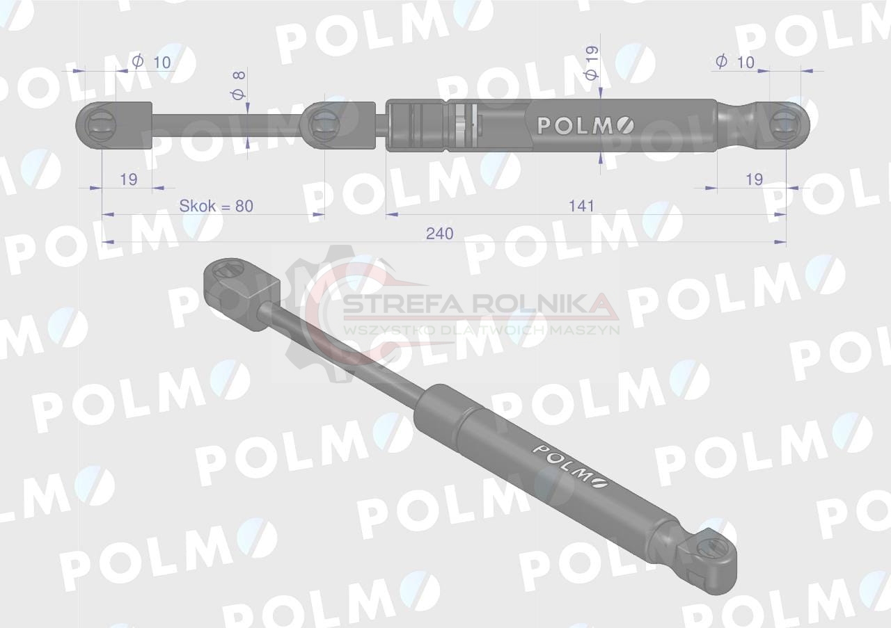 Siłownik tylnej szyby L max. 240mm 1284636C1P CASE IH POLMO