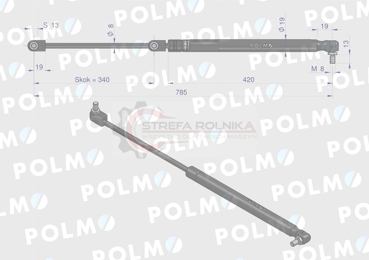 Siłownik tylnej szyby L max. 785mm 3389556M1P MASSEY FERGUSON POLMO