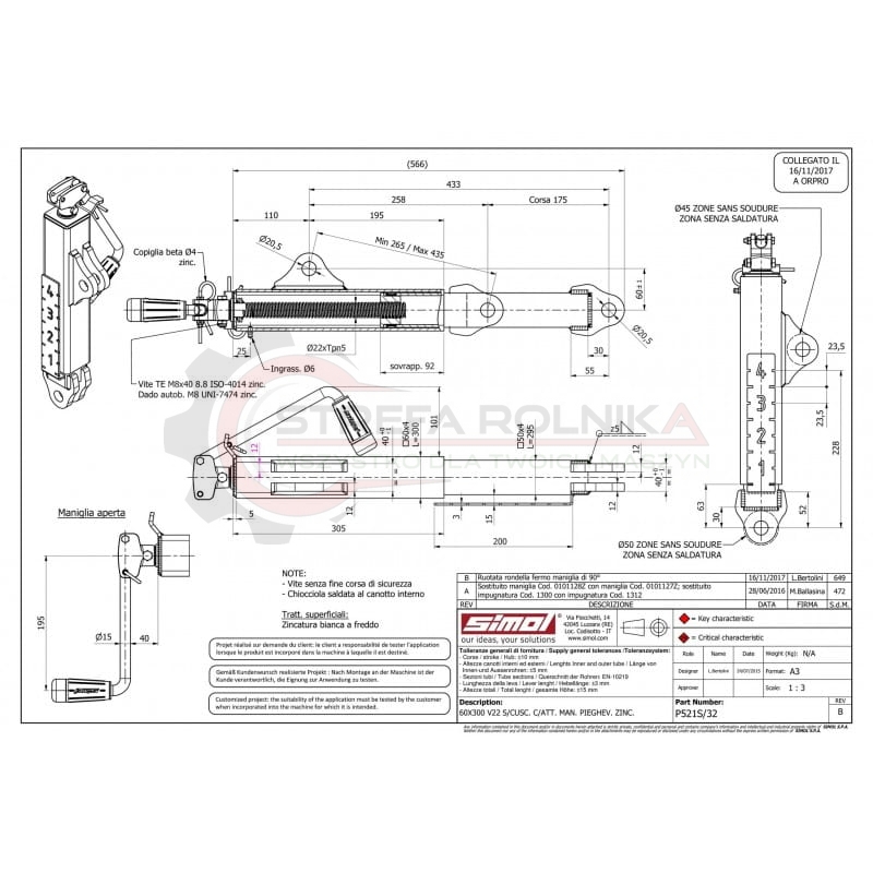 Stopa podporowa 368mm 1000 kg z ramieniem ruchomym SIMOL P521S/32