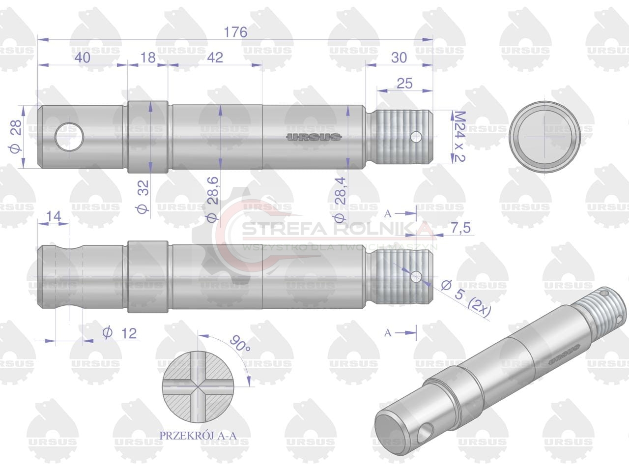 Sworzeń ramienia podnośnika C-385 ORYGINAŁ URSUS