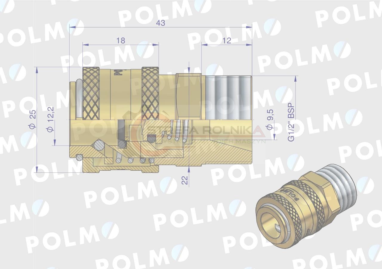 Szybkozłącze pneumatyczne P26 NW7.2 gniazdo 1/2"BSP gwint zewnętrzny POLMO ( sprzedawane po 5 )