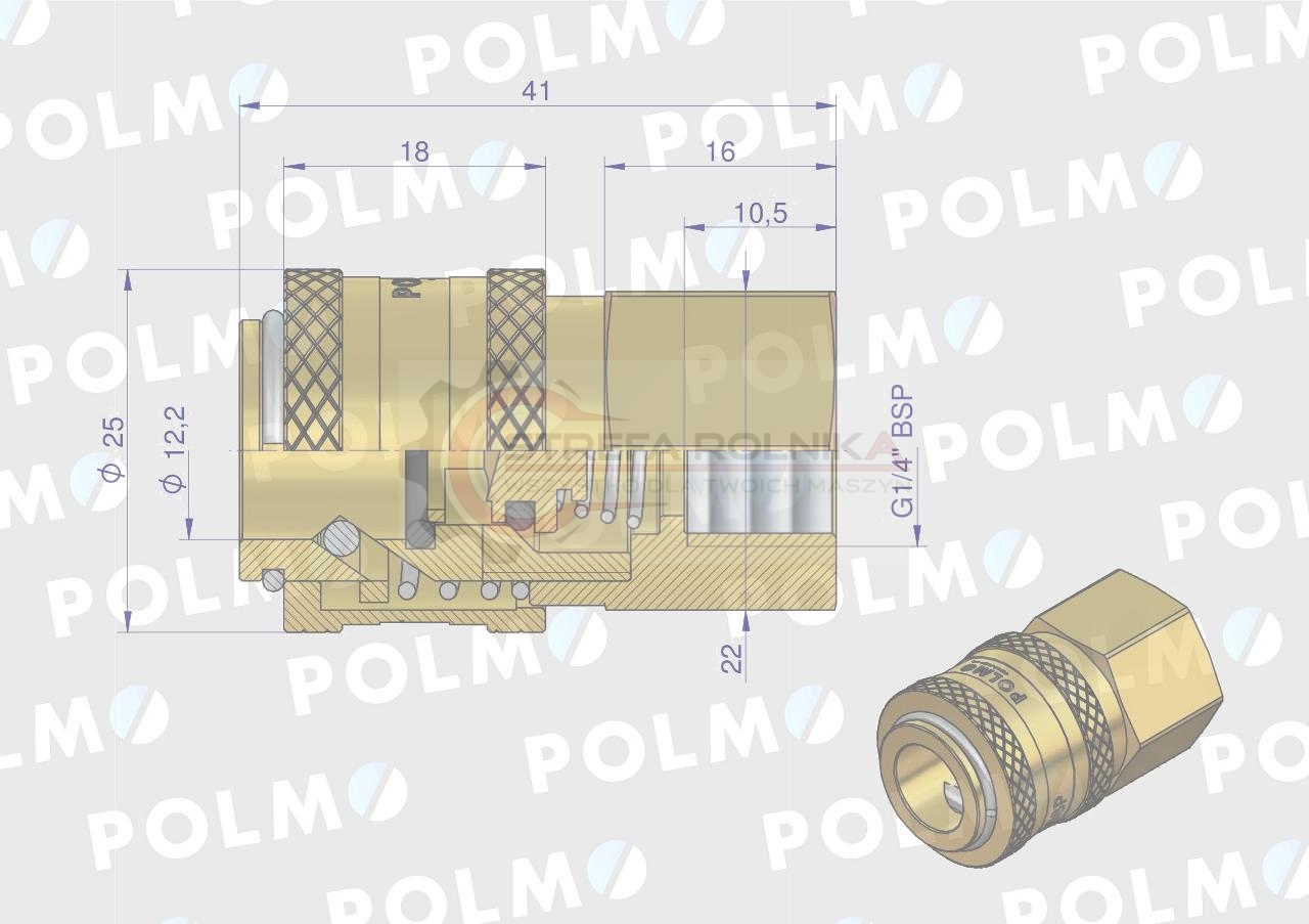Szybkozłącze pneumatyczne P26 NW7.2 gniazdo 1/4"BSP gwint wewnętrzny POLMO ( sprzedawane po 5 )