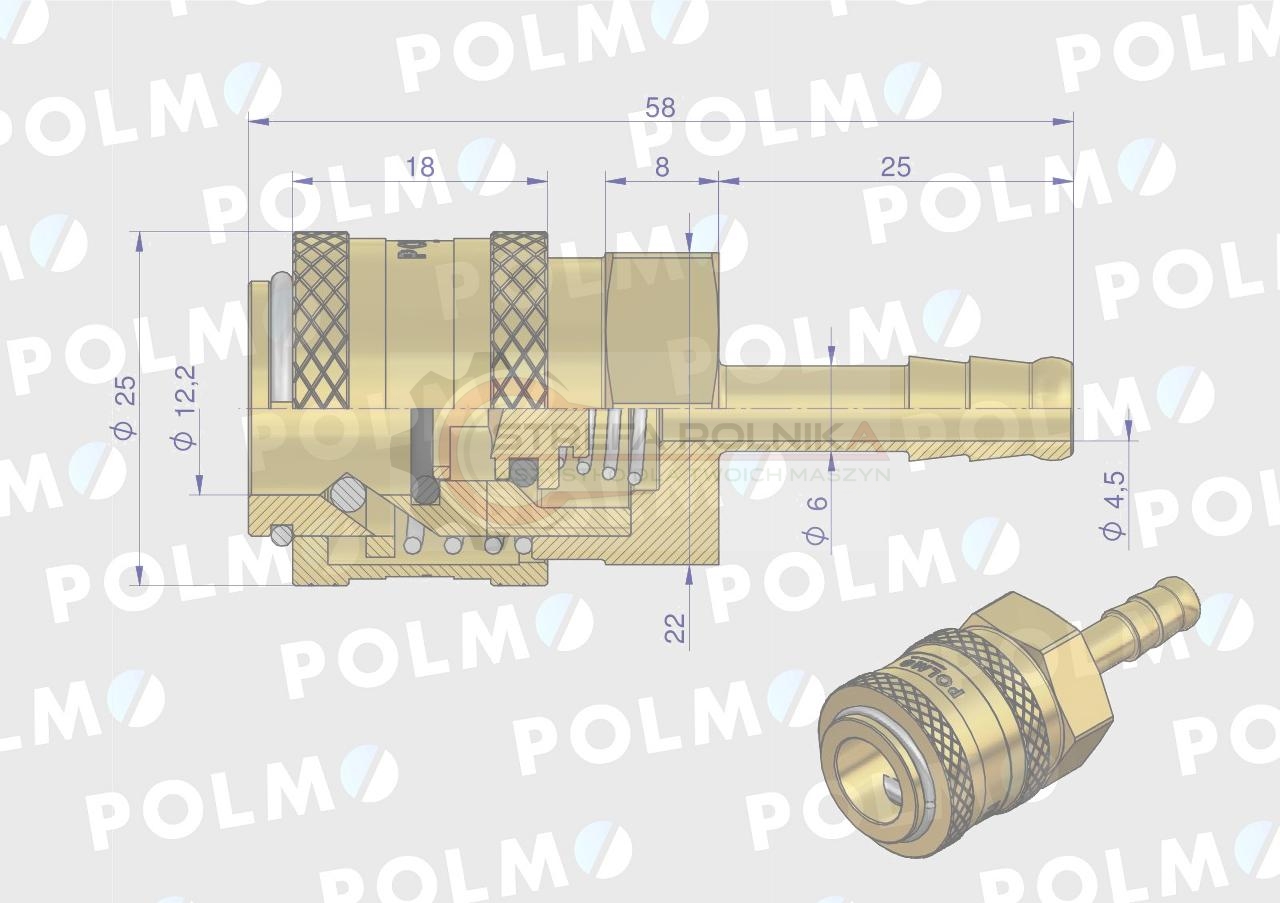 Szybkozłącze pneumatyczne P26 NW7.2 gniazdo pod wąż DN06mm POLMO ( sprzedawane po 5 )