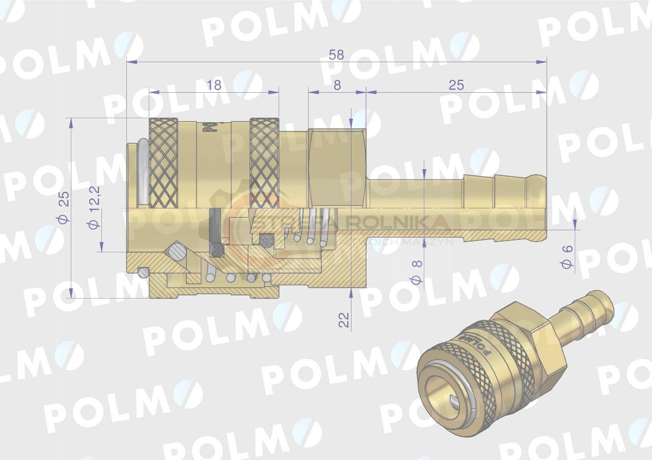 Szybkozłącze pneumatyczne P26 NW7.2 gniazdo pod wąż DN08mm POLMO ( sprzedawane po 5 )