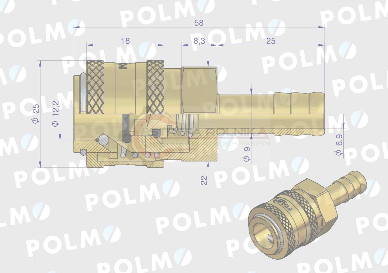 Szybkozłącze pneumatyczne P26 NW7.2 gniazdo pod wąż DN09mm POLMO ( sprzedawane po 5 )