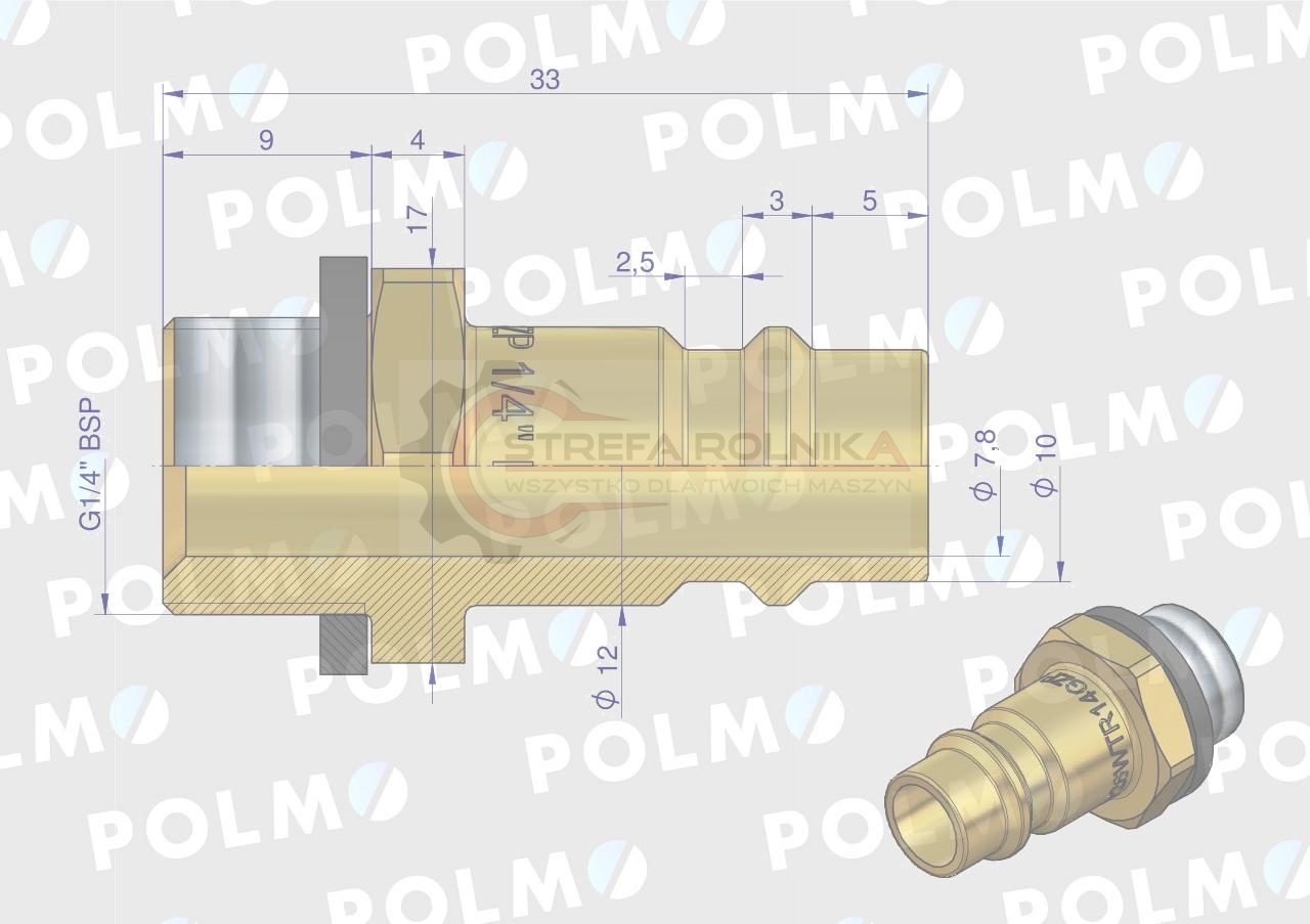 Szybkozłącze pneumatyczne P26 NW7.2 wtyczka 1/4"BSP gwint zewnętrzny POLMO ( sprzedawane po 5 )