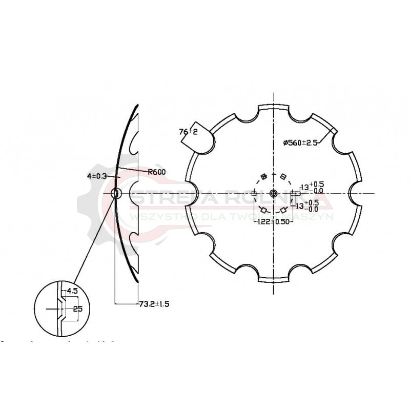 Talerz do agregatu talerzowego, zębaty 560 mm, 6 otworowy, grubość 4 mm