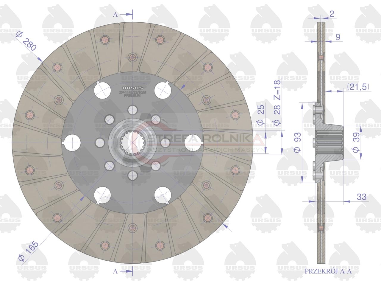 Tarcza sprzęgłowa w marce Ursus to produkt najwyższej jakości. Tarcza Sprzęgłowa jest jednym z najważniejszych elementów układu przeniesienia napędu. Odpowiada za przekazanie momentu obrotowego z koła zamachowego na wałek sprzęgłowy skrzyni biegów. Jednym z zadań tarczy sprzęgła jest również redukcja i tłumienie drgań przenoszonych obciążeń. Tarcza sprzęgłowa premium wyróżnia się dłuższą żywotnością zwiększoną o 30%, posiada zwiększoną liczbę nitów piasty, zostały również zmienione nity okładziny z aluminiowych na miedziane. Okładzina posiada więcej włókien, które wydłużają jej żywotność. Każdy produkt posiada 5 letnią żelazną gwarancję.