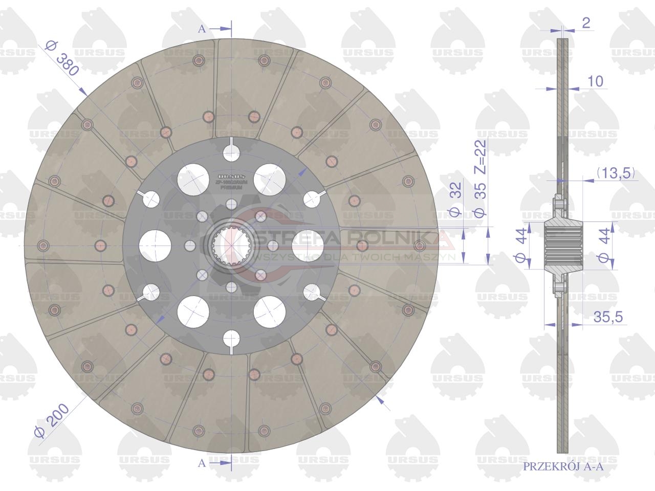Tarcza sprzęgła fi 380 pias.22 frezy C-385 PREMIUM ORYGINAŁ URSUS