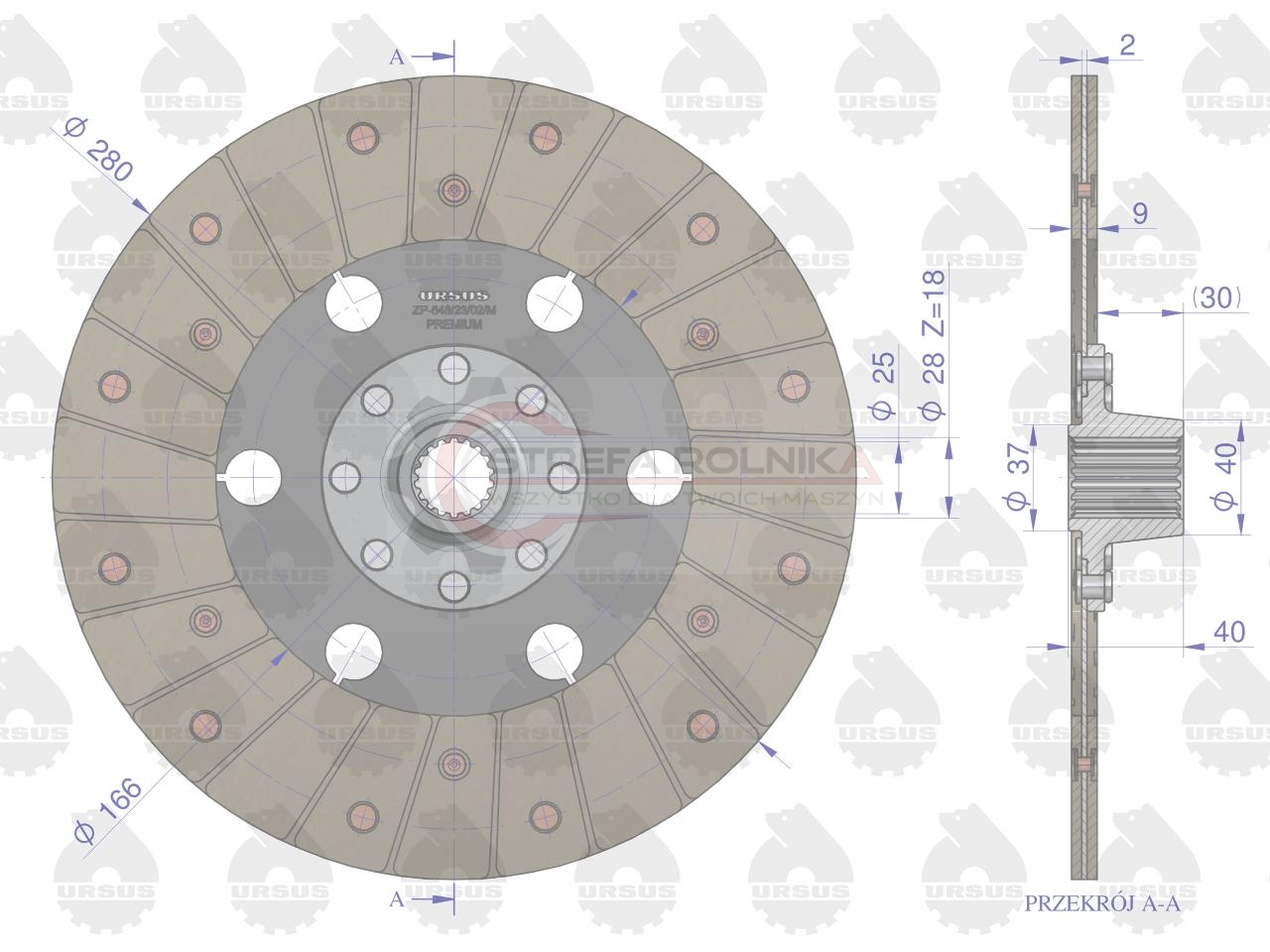 Tarcza sprzęgłowa w marce Ursus to produkt najwyższej jakości. Tarcza Sprzęgłowa jest jednym z najważniejszych elementów układu przeniesienia napędu. Odpowiada za przekazanie momentu obrotowego z koła zamachowego na wałek sprzęgłowy skrzyni biegów. Jednym z zadań tarczy sprzęgła jest również redukcja i tłumienie drgań przenoszonych obciążeń. Tarcza sprzęgłowa premium wyróżnia się dłuższą żywotnością zwiększoną o 30%, posiada zwiększoną liczbę nitów piasty, zostały również zmienione nity okładziny z aluminiowych na miedziane. Okładzina posiada więcej włókien, które wydłużają jej żywotność. Każdy produkt posiada 5 letnią żelazną gwarancję.