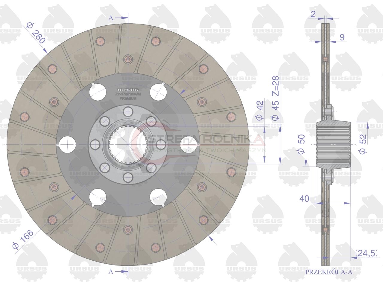 Tarcza sprzęgłowa w marce Ursus to produkt najwyższej jakości. Tarcza Sprzęgłowa jest jednym z najważniejszych elementów układu przeniesienia napędu. Odpowiada za przekazanie momentu obrotowego z koła zamachowego na wałek sprzęgłowy skrzyni biegów. Jednym z zadań tarczy sprzęgła jest również redukcja i tłumienie drgań przenoszonych obciążeń. Tarcza sprzęgłowa premium wyróżnia się dłuższą żywotnością zwiększoną o 30%, posiada zwiększoną liczbę nitów piasty, zostały również zmienione nity okładziny z aluminiowych na miedziane. Okładzina posiada więcej włókien, które wydłużają jej żywotność. Każdy produkt posiada 5 letnią żelazną gwarancję.