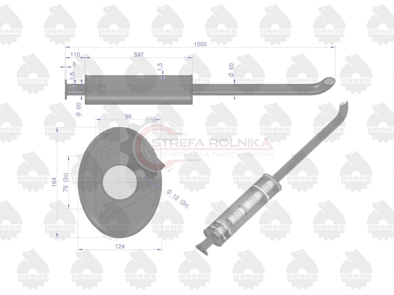 Tłumik 1500mm 7kg ZETOR EMALIA ORYGINAŁ URSUS