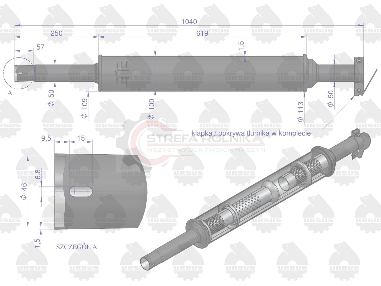 Tłumik okrągły 1040mm 5,3kg C-360 (prosty) ORYGINAŁ URSUS