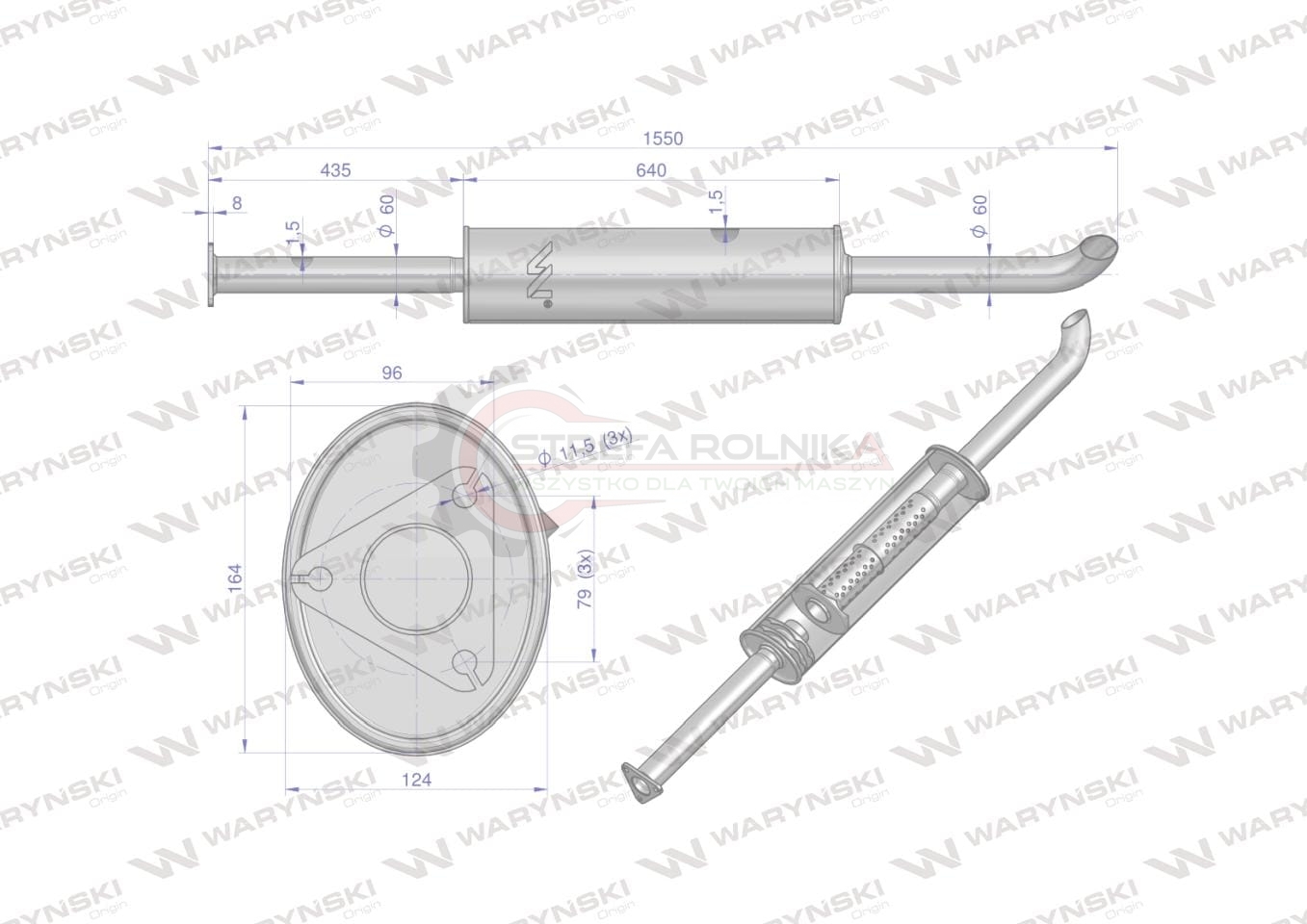 Tłumik prosty długi 1550mm 8kg C-385 INOX WARYŃSKI