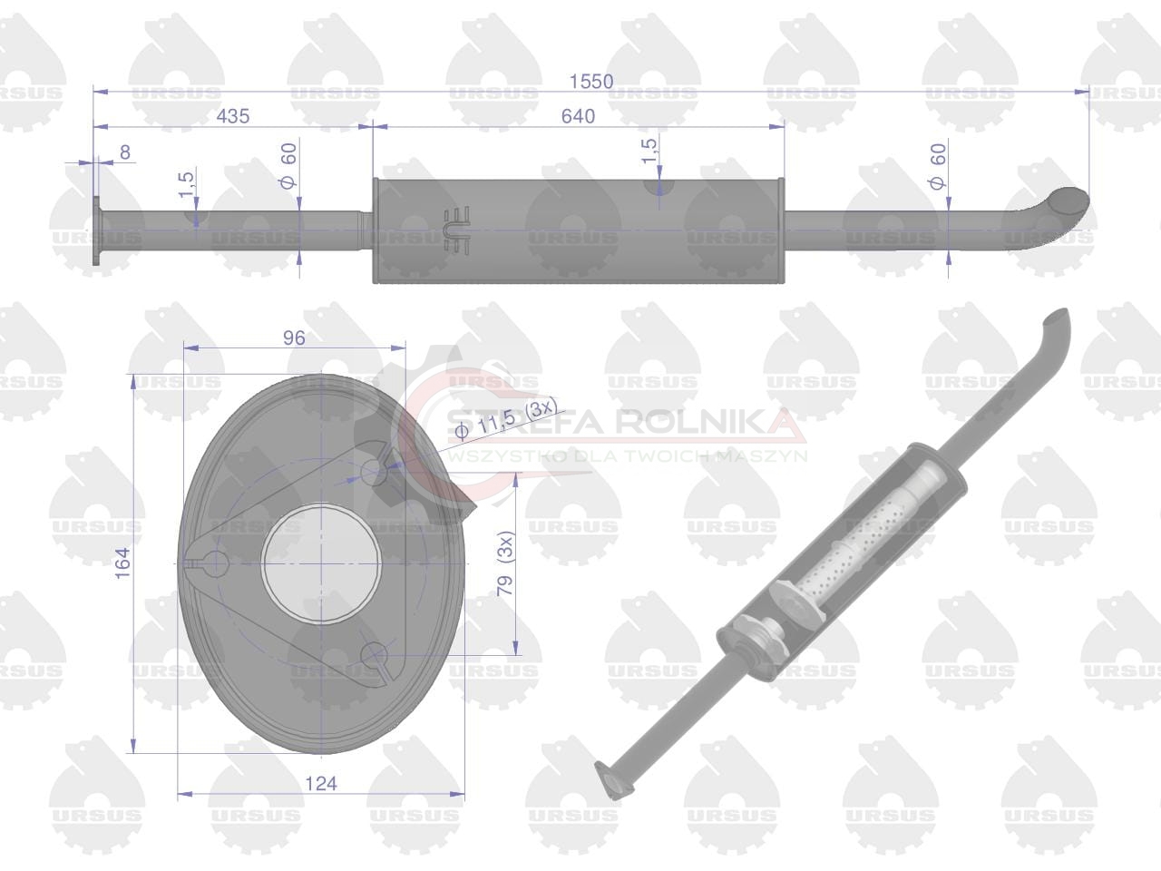 Tłumik prosty długi 1550mm 8kg C-385 ORYGINAŁ URSUS
